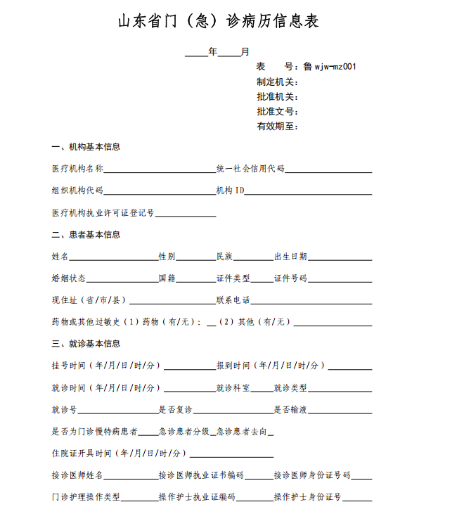 山东省门(急)诊病历信息统计报表制度